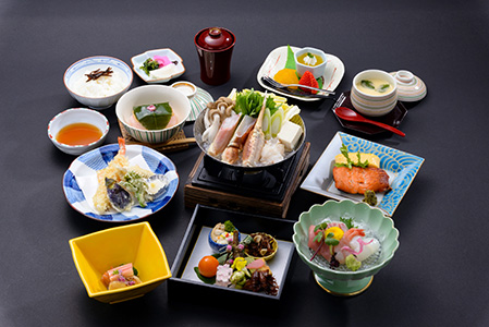 豊かな自然に恵まれた京田辺には、全国に誇れる名産品が数多くあります。山城たけのこ、田辺なす、えびいも、お茶、桃等。 そんな地元の特産品はもちろん、全国から運ばれる選りすぐりの食材を使い、その時々の旬の味覚を味わっていただきます。 各種会席コースや松花堂弁当など、ご予算に合わせてお選びください。